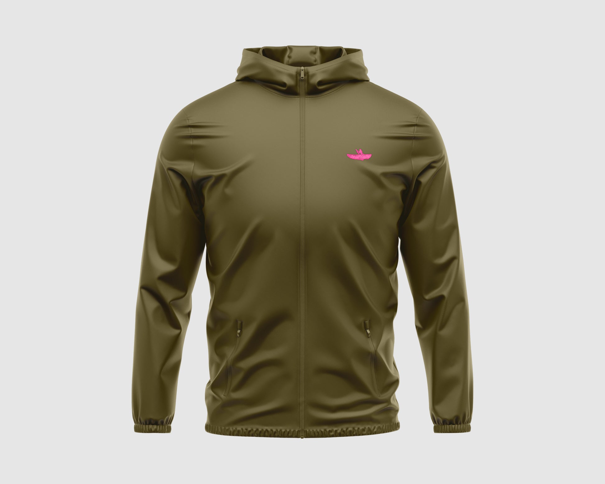 - Sealed hood visor, zipper pockets, interior zip opening.