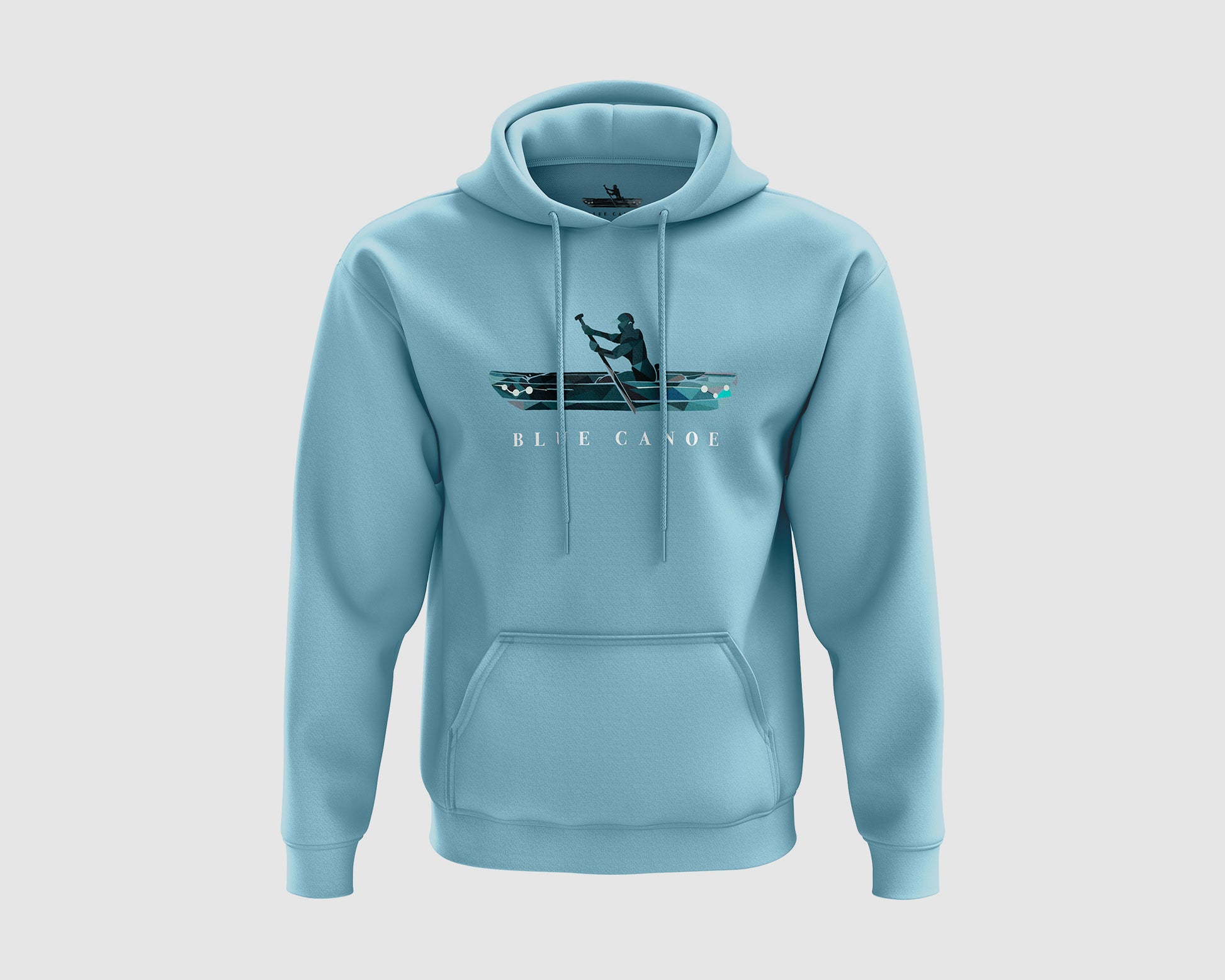 Essential unisex hoodie with set-in sleeve. Flat drawcords in matching body colour, made with organic cotton. Providing the ultimate comfort and fit. Adorned with the BLUE CANOE x EPOLLO geometric digital print across the chest.
